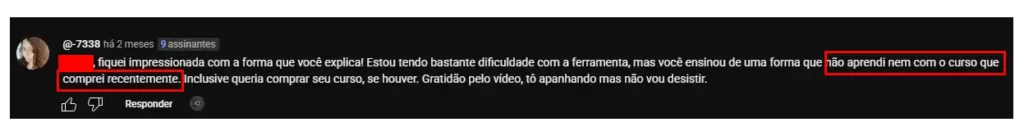 Não acredita em min ainda? Então olha esse comentário que eu peguei em uma aula no YouTube. (clique pra ampliar)